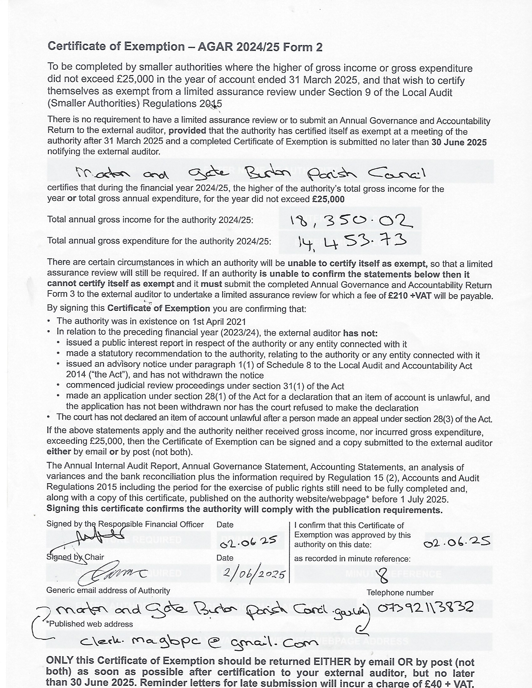 2024-25 AGAR (Page 3) Certificate of Exemption