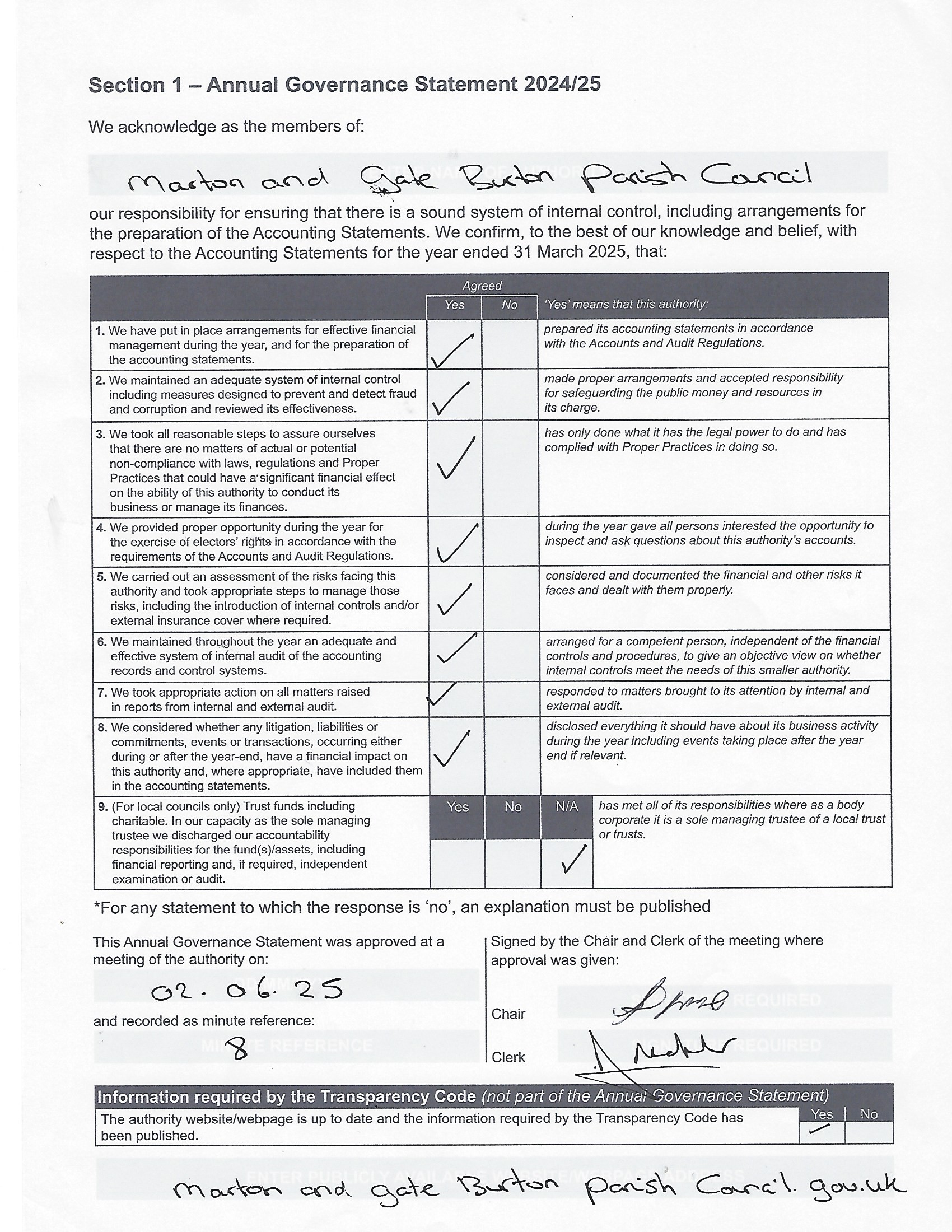 2024-25 AGAR (Page 5) Annual Governance Statement